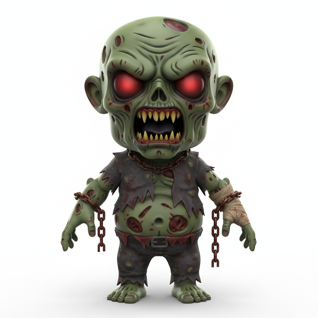 Cartoon zombie character with glowing red eyes. smooth edges, complex geometry, game-ready, character, symmetric geometry.