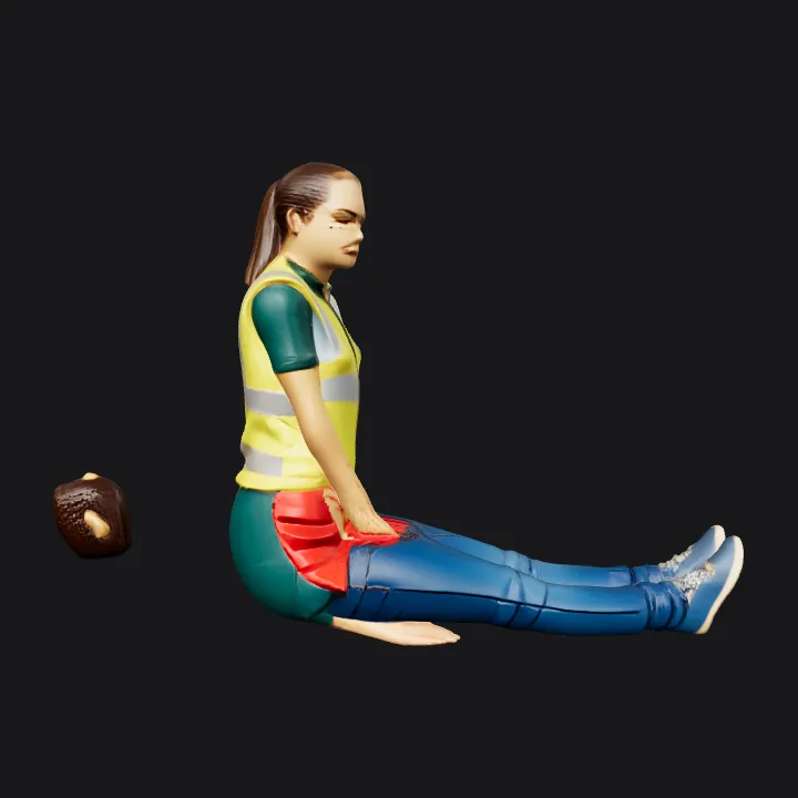 Person assisting another lying down. complex geometry, smooth edges, character.