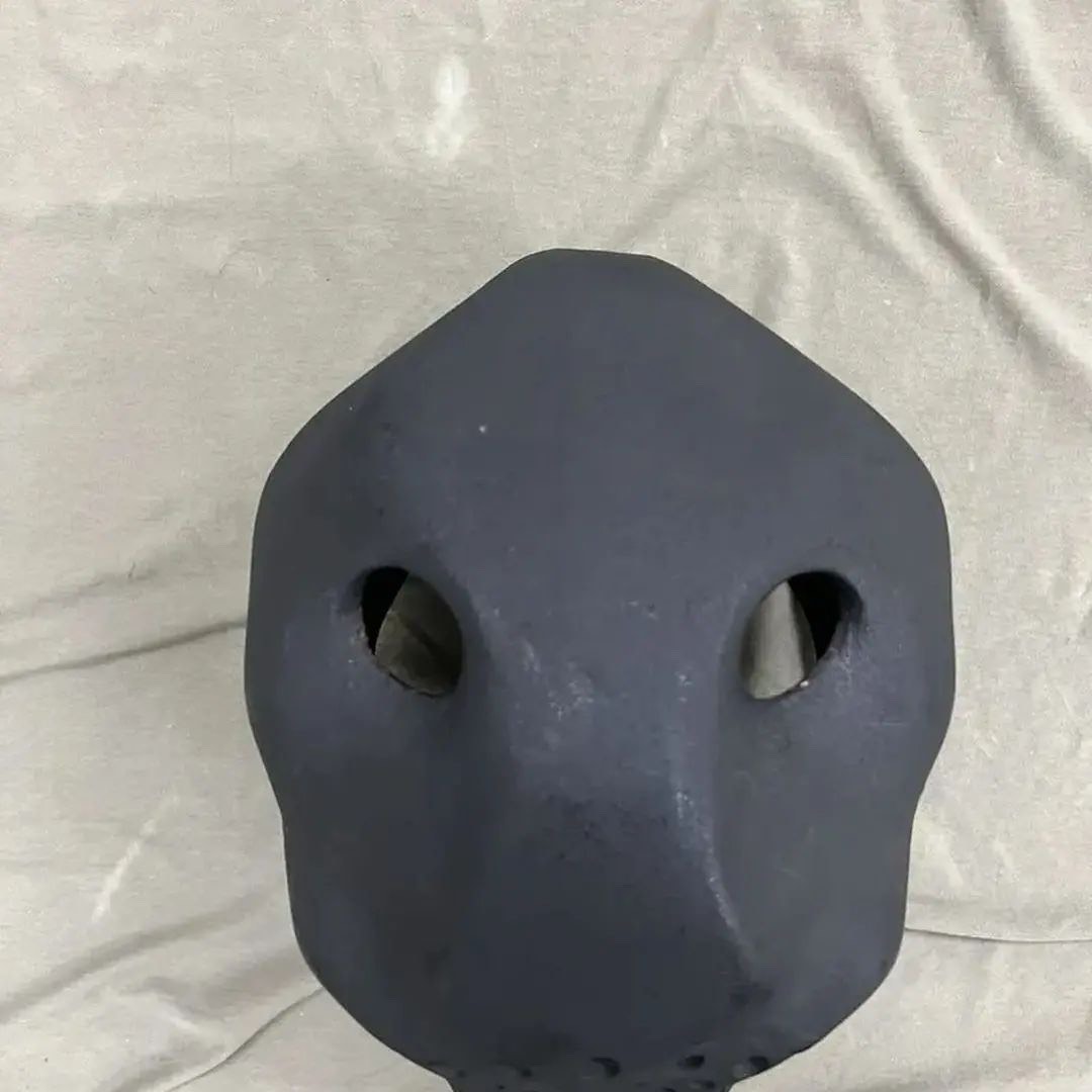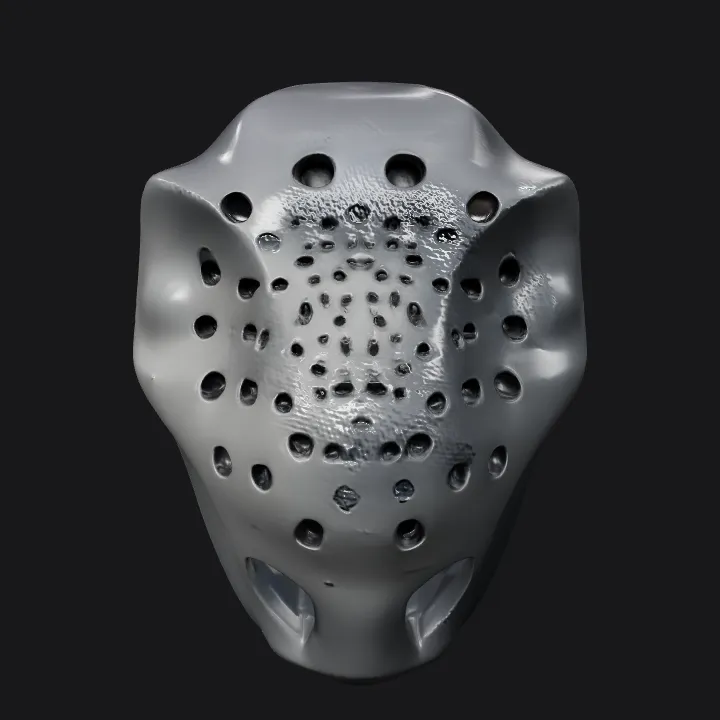 Ventilated mask resembling a skull. smooth edges, complex geometry, symmetric geometry.