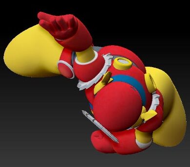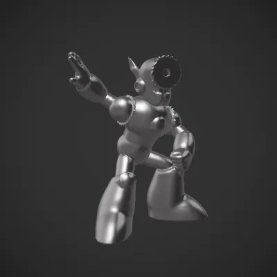 Cartoonish robot character in dynamic pose. smooth edges, complex geometry, game-ready, character.
