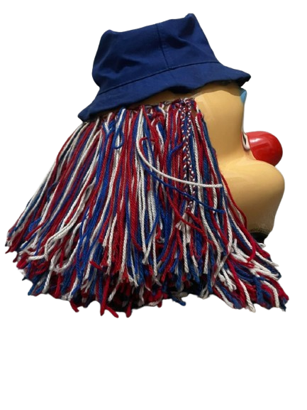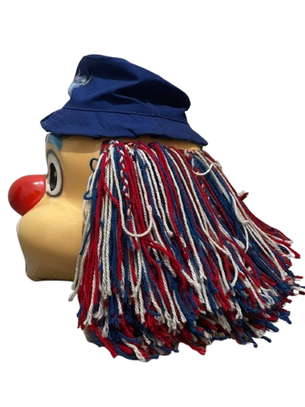 Clown mask with yarn hair and hat. smooth edges, simple geometry, character, symmetric geometry.