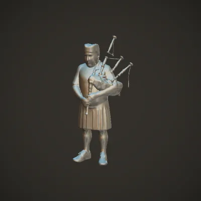 Man playing bagpipes in Scottish attire. complex geometry, character.