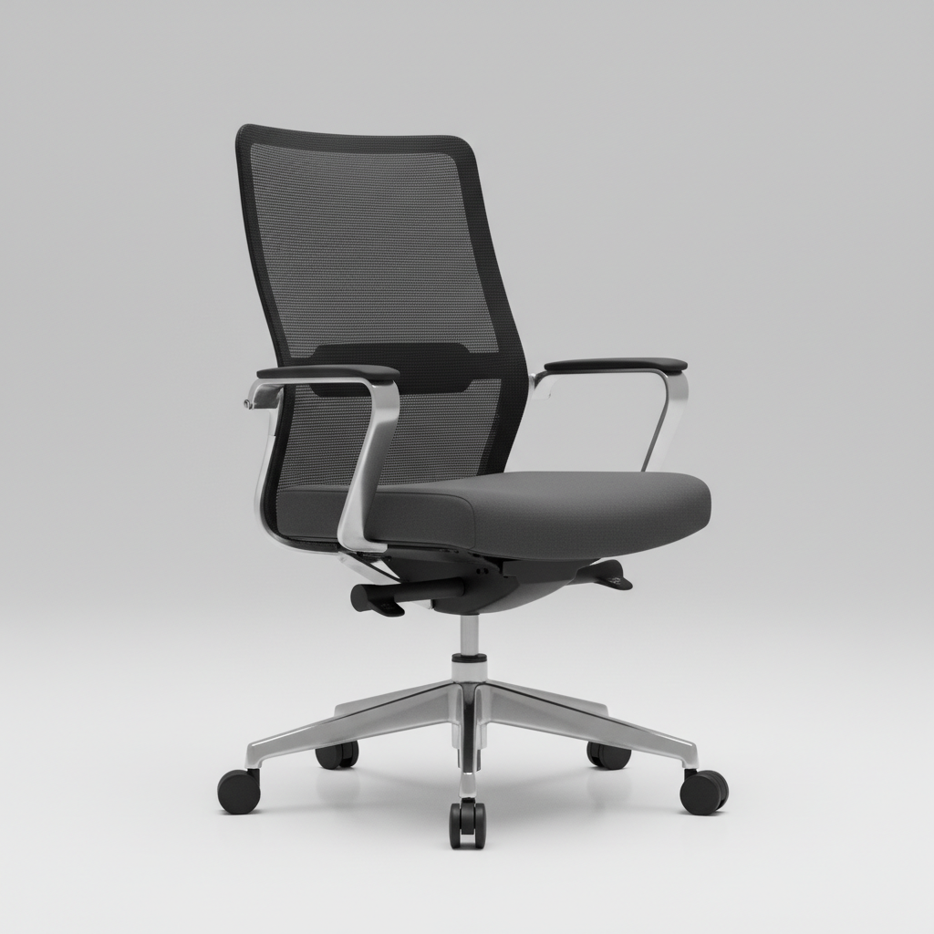 Modern office chair with mesh backrest. smooth edges, complex geometry, game-ready, symmetric geometry.