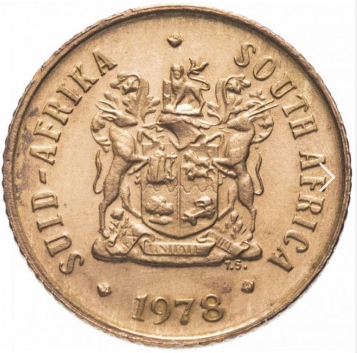 South African coin from 1978. smooth edges, simple geometry, symmetric geometry.