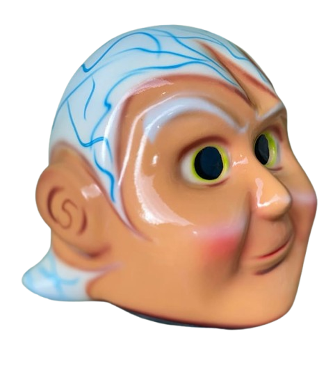 Toy head with blue stripes. smooth edges, simple geometry, character, symmetric geometry.