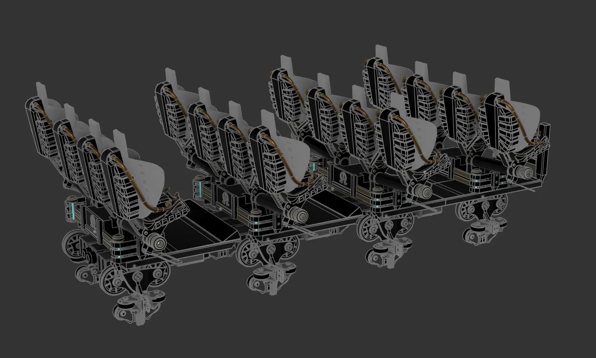 Theme park ride seats arrangement. complex geometry, game-ready, symmetric geometry.