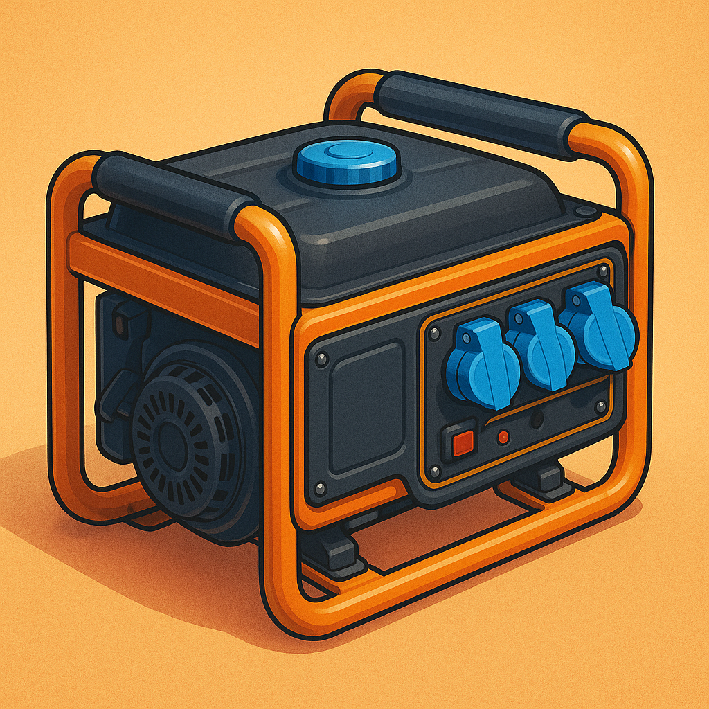 portable electric generator with bright frame. sharp edges, complex geometry, game-ready, symmetric geometry.