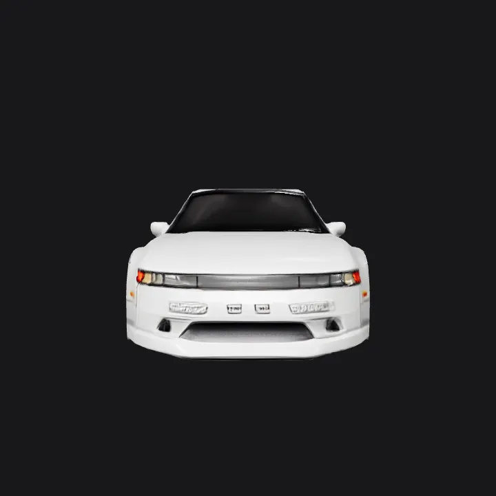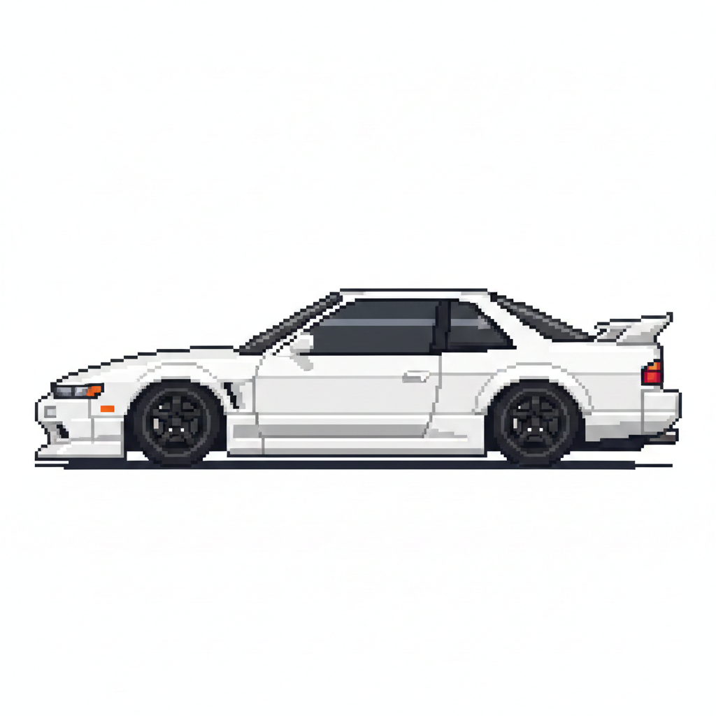 White sports car, side profile, pixel art. sharp edges, simple geometry, game-ready, symmetric geometry.