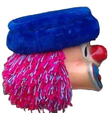 Clown face mask with blue hat and red hair. smooth edges, simple geometry, character, symmetric geometry.