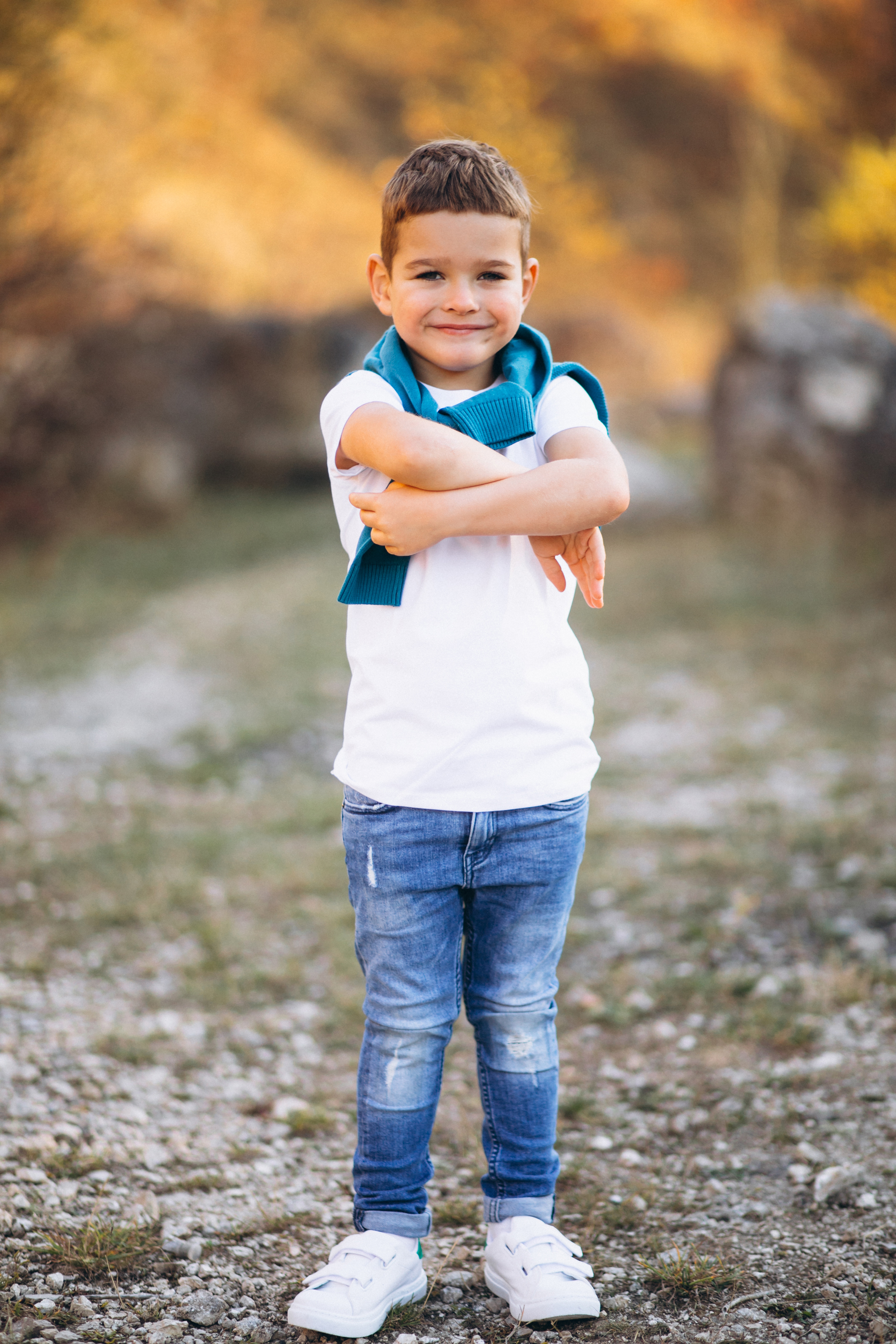 A standing young boy outdoors. smooth edges, complex geometry, character.