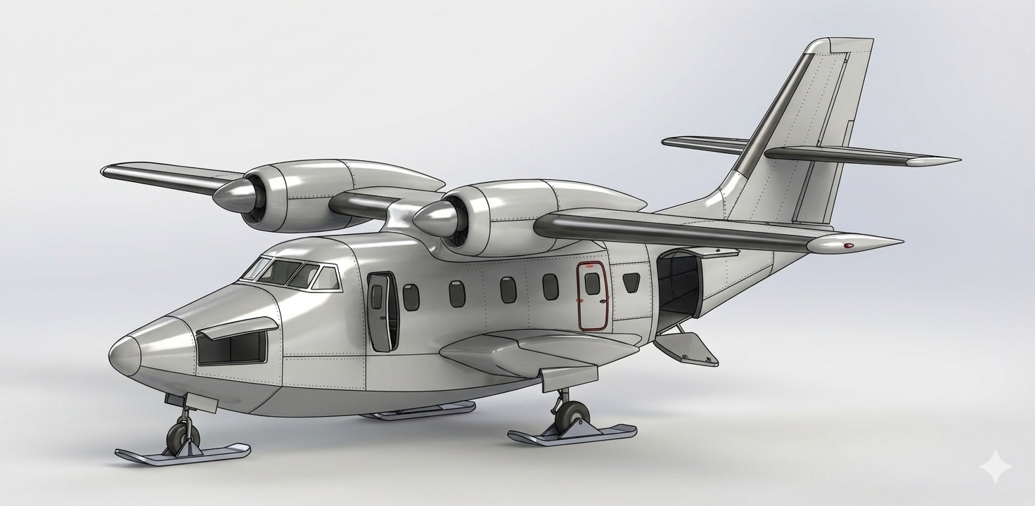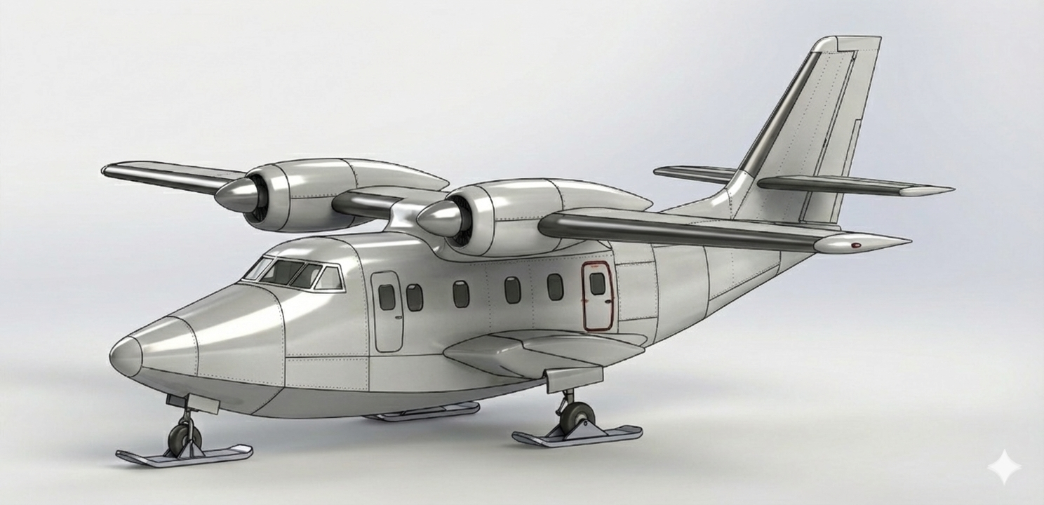 Small commercial airplane on ground. complex geometry, sharp edges, symmetric geometry.