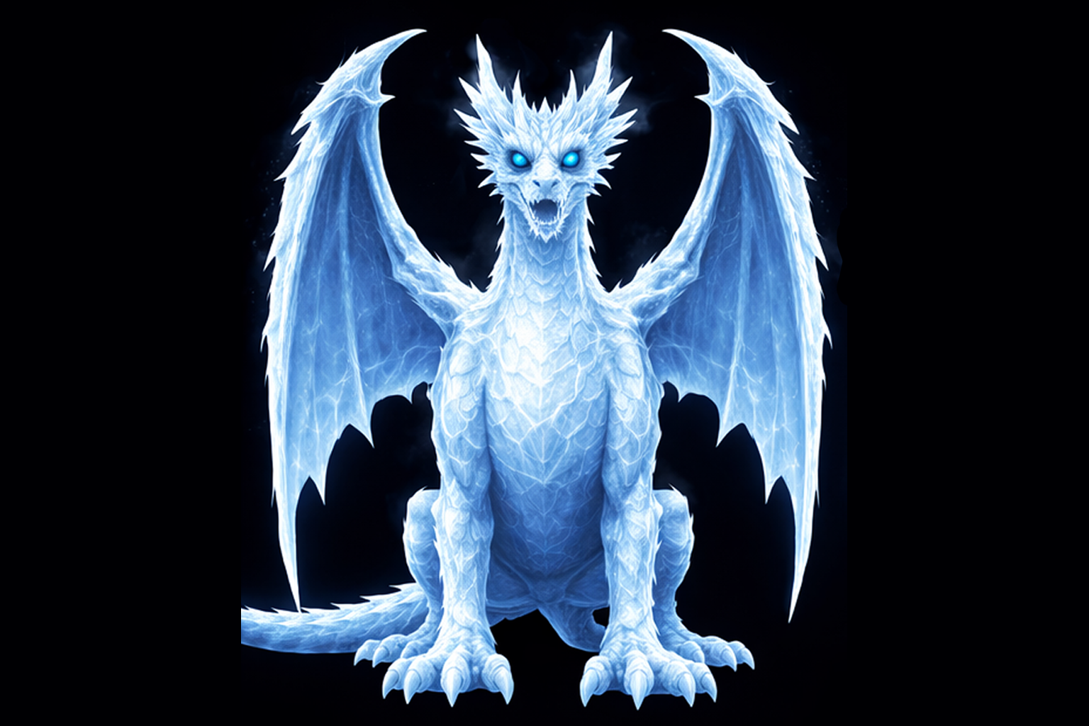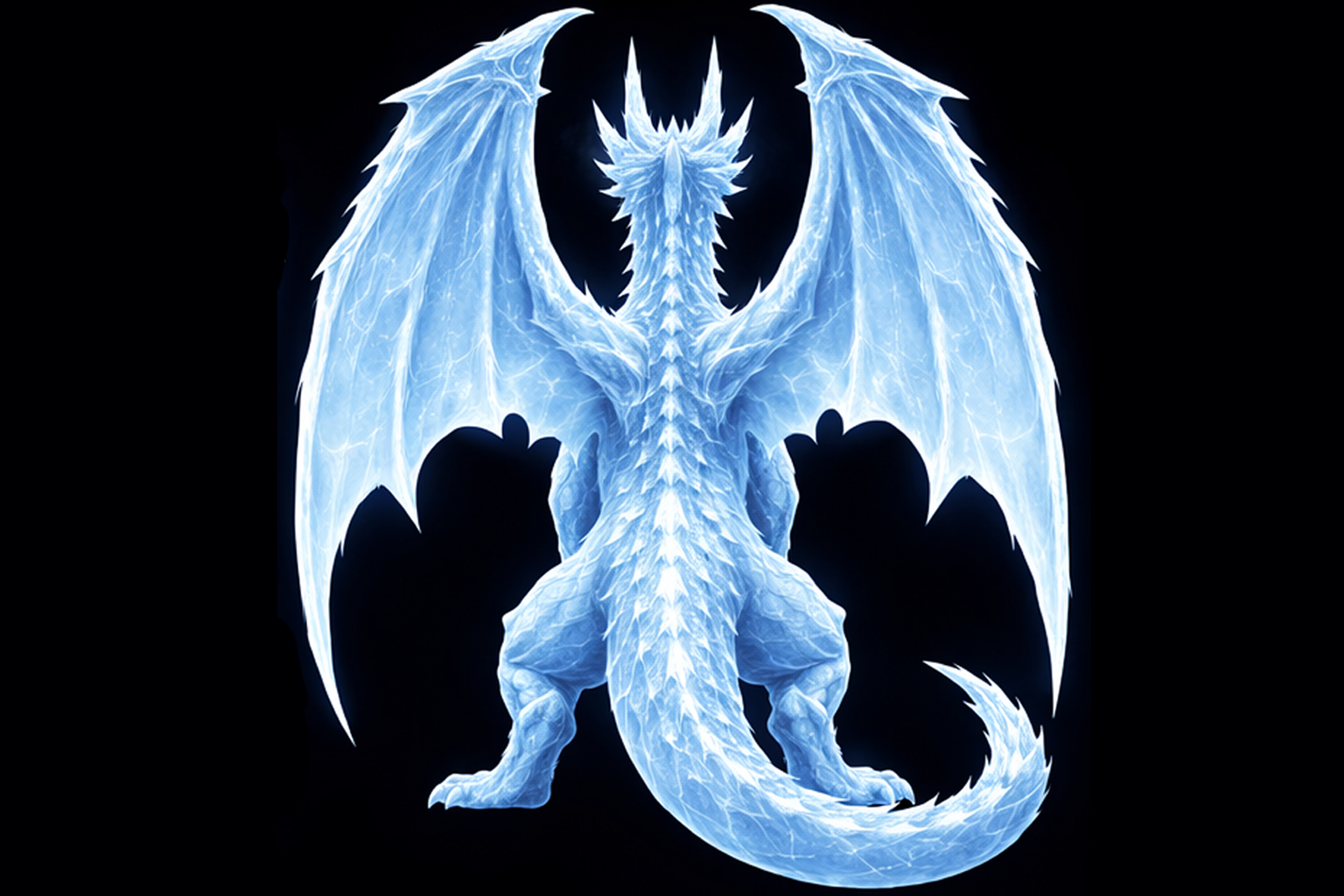 Ice dragon facing backwards. sharp edges, complex geometry, game-ready, character, symmetric geometry.