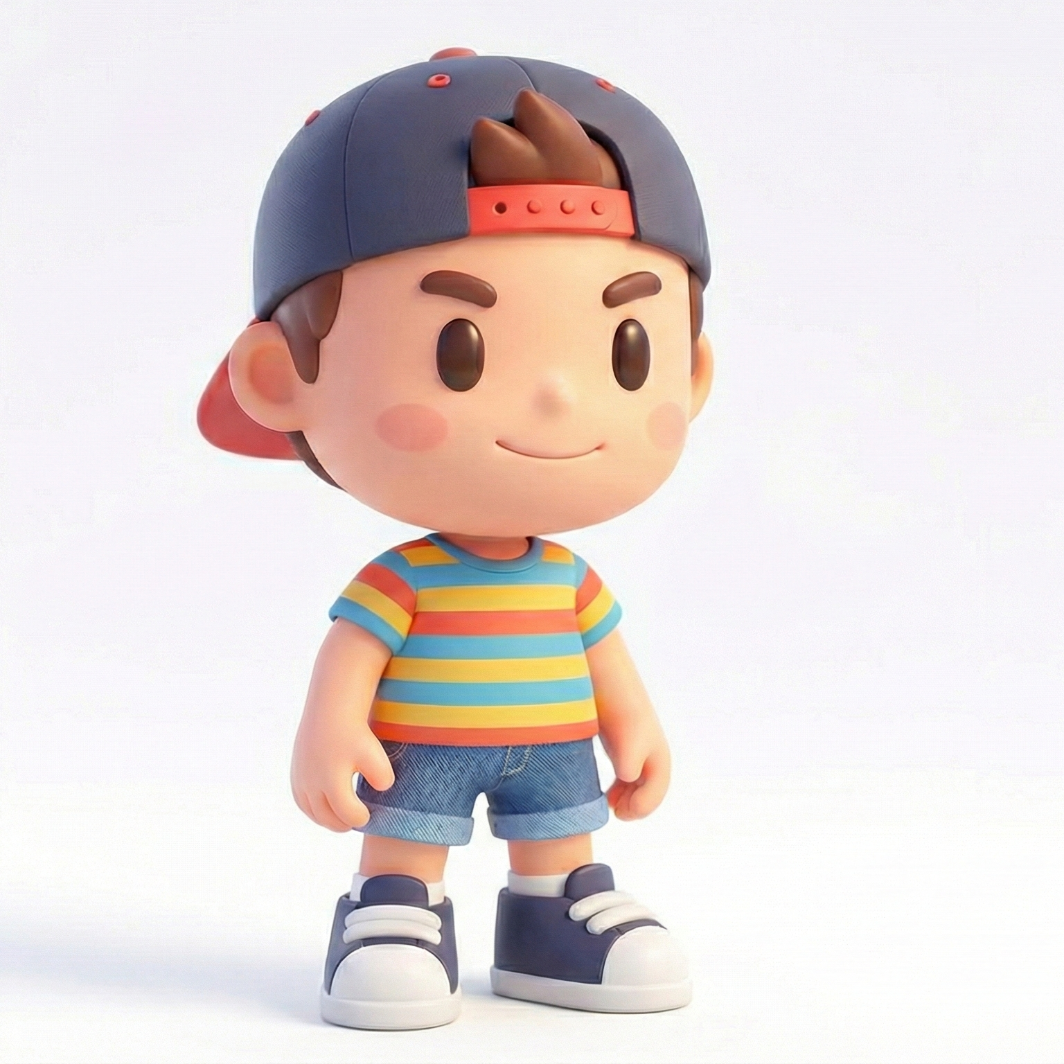 Cute cartoon boy in striped shirt. smooth edges, simple geometry, game-ready, character.