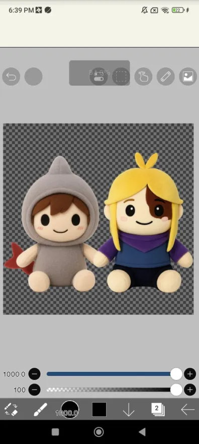 Two plush toy characters sitting together. smooth edges, simple geometry, character.