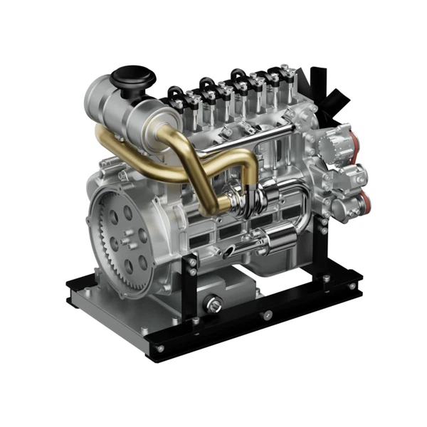 Automobile engine block with visible parts. sharp edges, complex geometry.