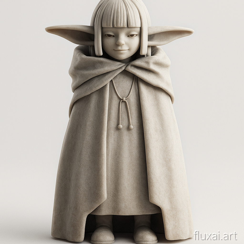 Stylized figure in cloak with large ears. smooth edges, simple geometry, character, symmetric geometry.
