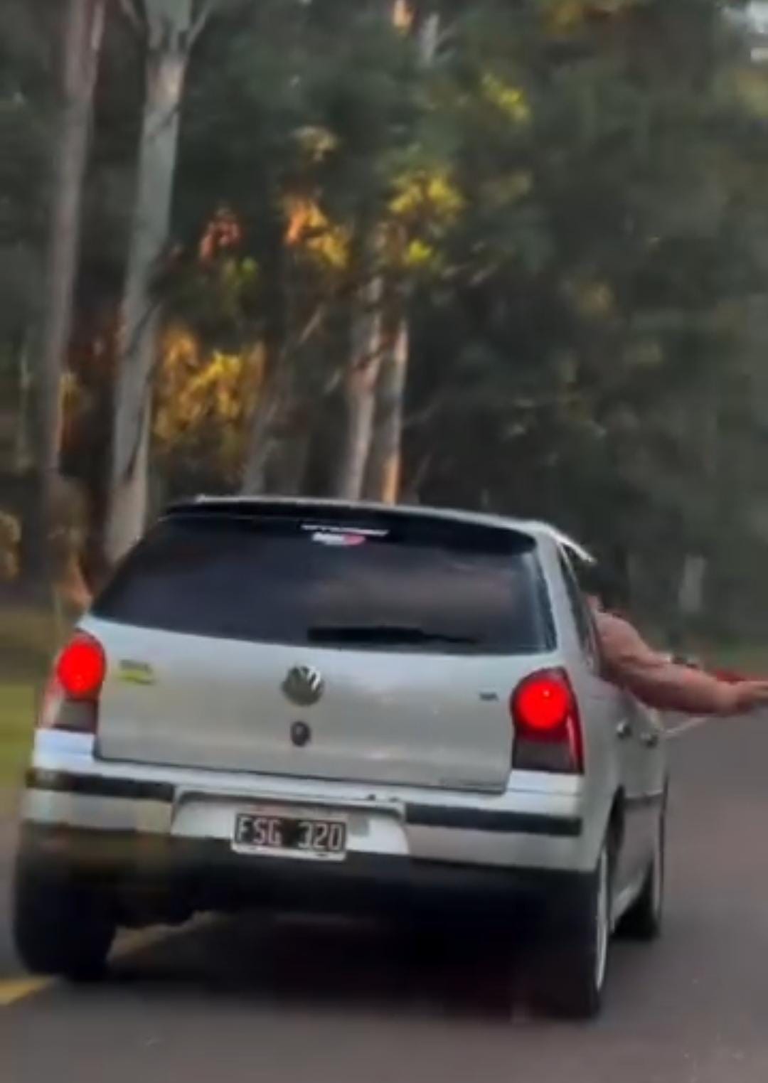Car with person hanging out window. simple geometry, complex geometry, smooth edges, character.