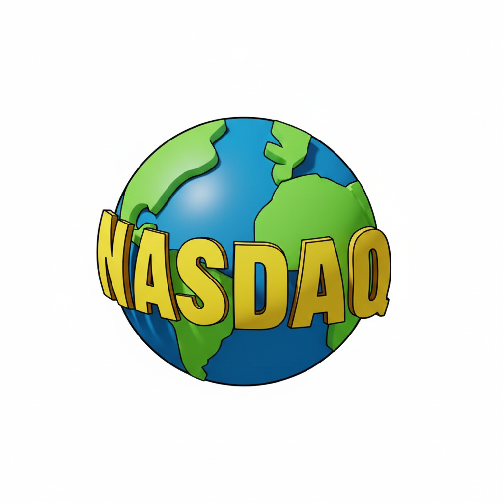 Globe with the word NASDAQ around it. simple geometry, sharp edges, symmetric geometry.