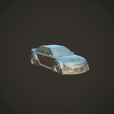 Red modified sports car on a city street. sharp edges, complex geometry, game-ready, symmetric geometry.