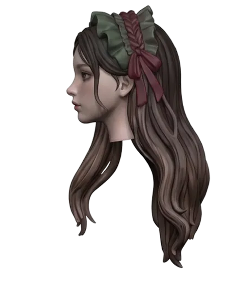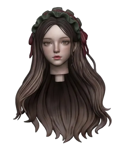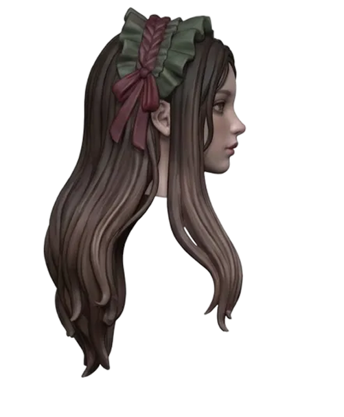 Back view of a girl's head with long hair. smooth edges, complex geometry, character, symmetric geometry.