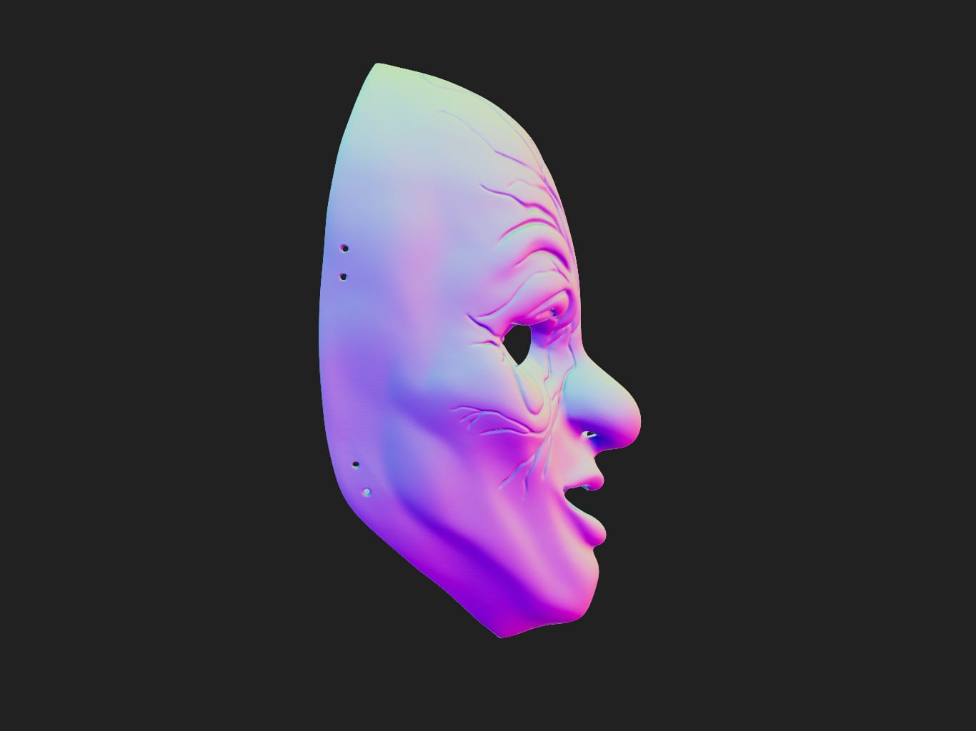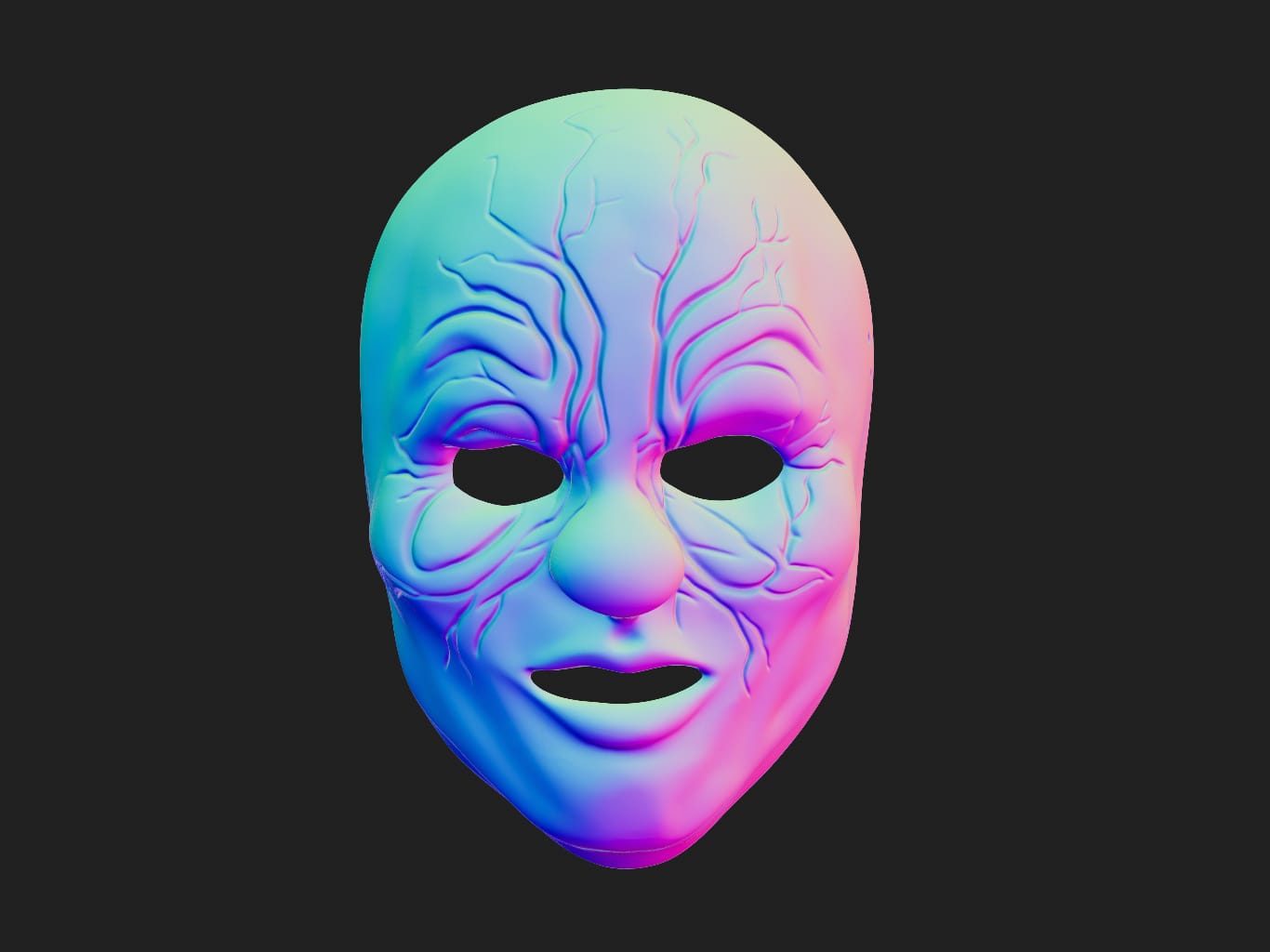 Creepy human face mask. smooth edges, complex geometry, game-ready, symmetric geometry.