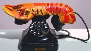 A lobster on a vintage black telephone. complex geometry, smooth edges.