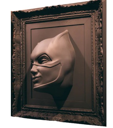 framed relief sculpture of a human torso. complex geometry, character, symmetric geometry.