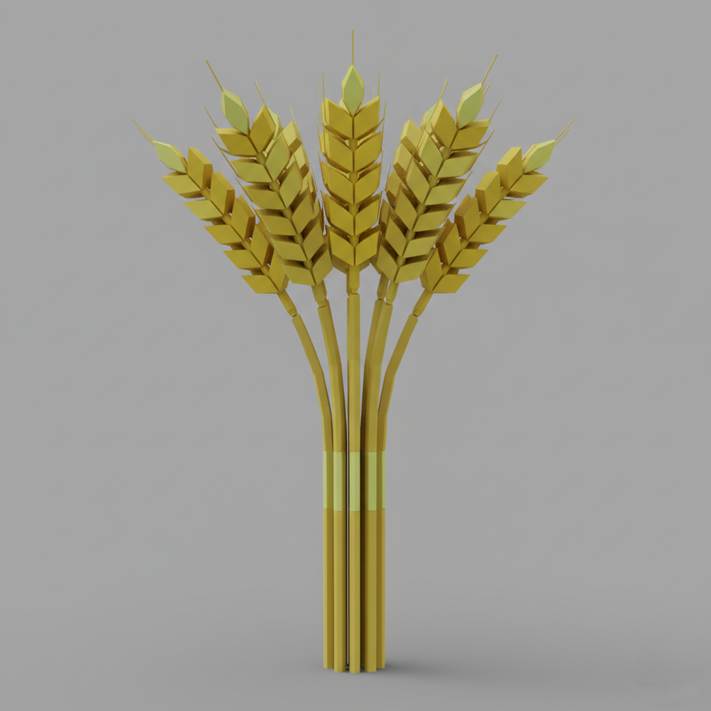 A bundle of stylized wheat stalks. sharp edges, simple geometry, game-ready, symmetric geometry.