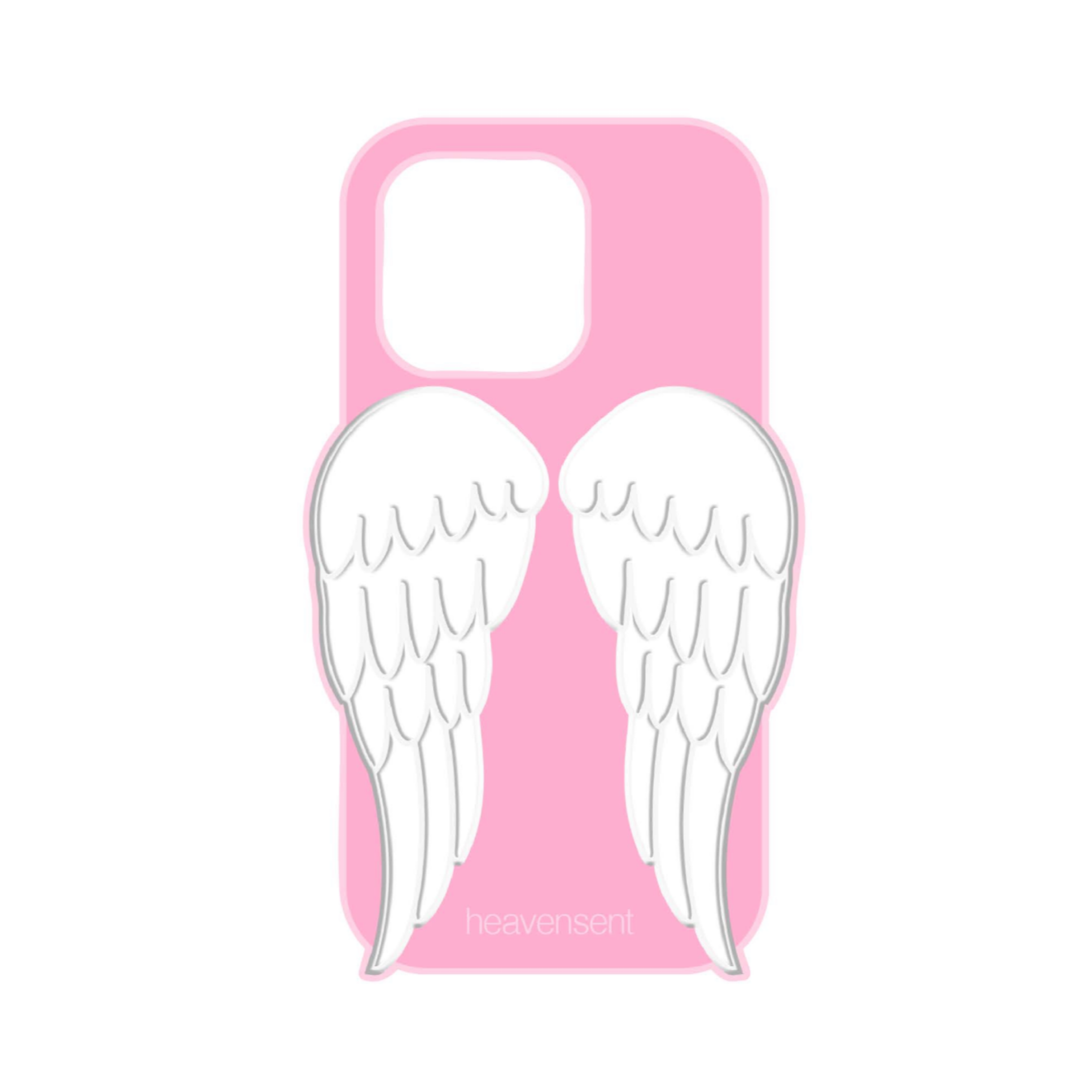 Pink phone case with angel wings. smooth edges, simple geometry, game-ready, symmetric geometry.