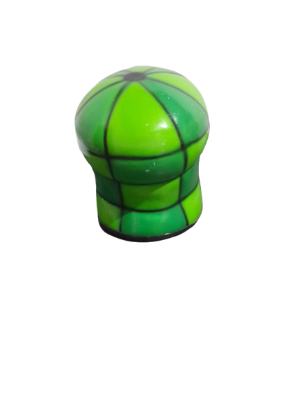 Green mushroom-shaped toy with grid pattern. smooth edges, simple geometry, symmetric geometry.