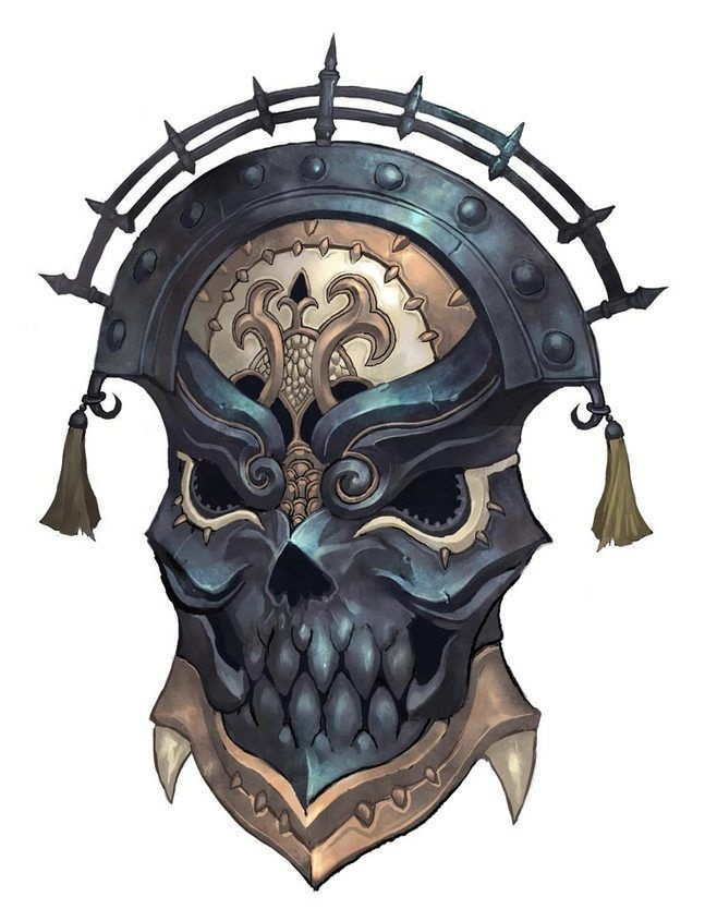 ornate fantasy skull mask with metallic elements. sharp edges, complex geometry, game-ready, symmetric geometry.