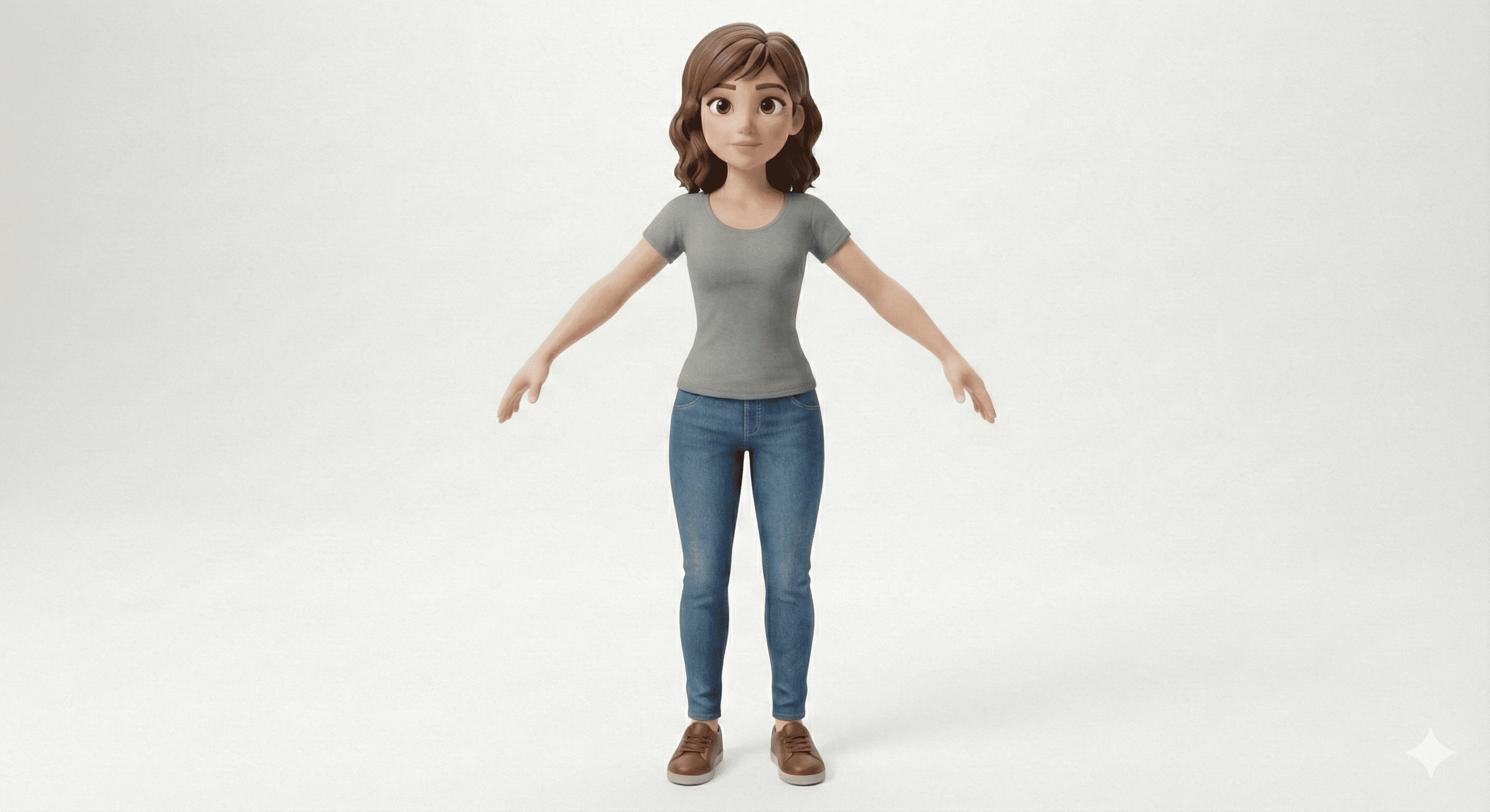 Female figure with casual clothing. simple geometry, character, symmetric geometry.