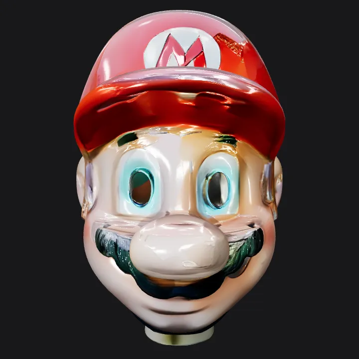 Mario character head sculpture. smooth edges, complex geometry, game-ready, character, symmetric geometry.