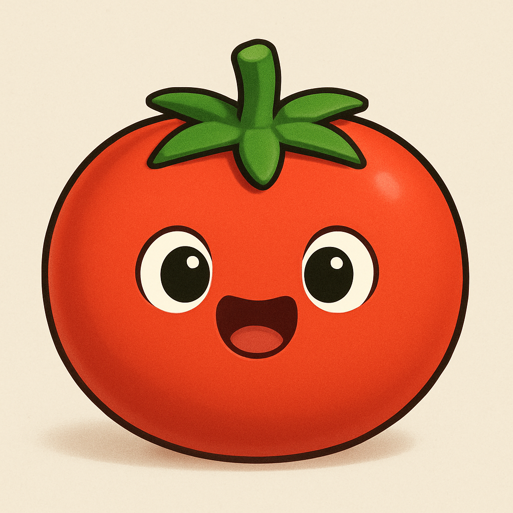 Cartoon tomato with a smiling face. smooth edges, simple geometry, game-ready, character, symmetric geometry.
