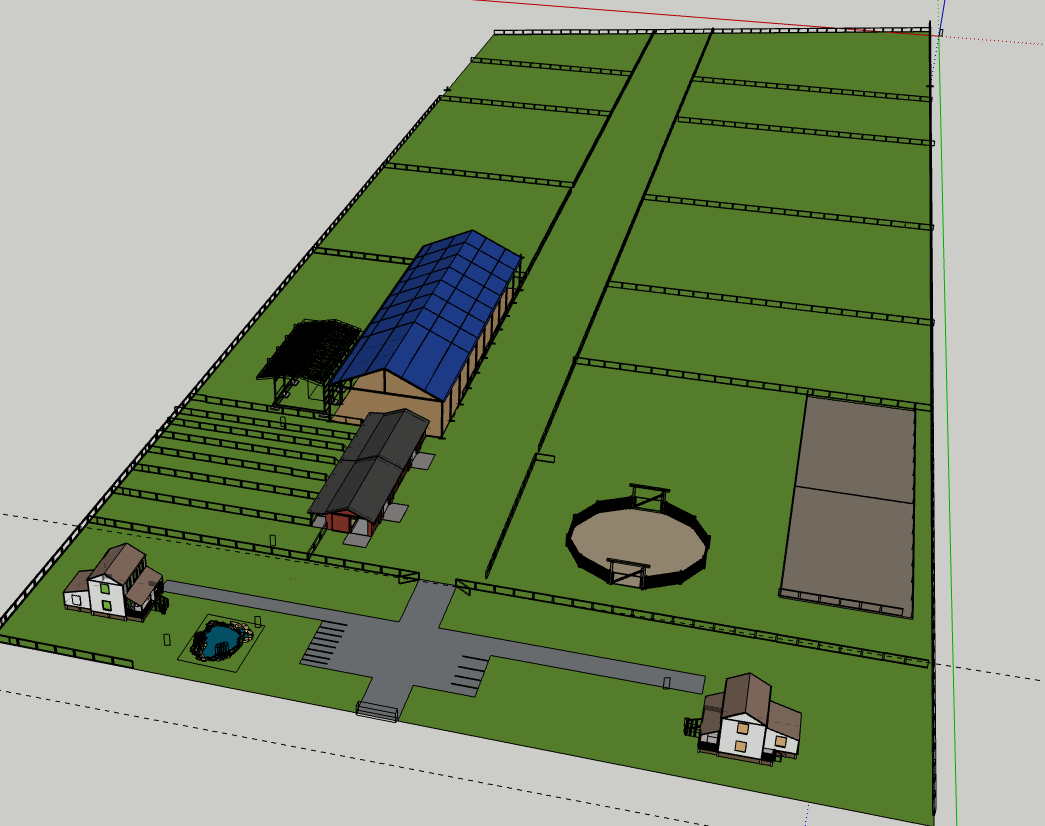 Farm layout with buildings and fields. simple geometry, complex geometry.