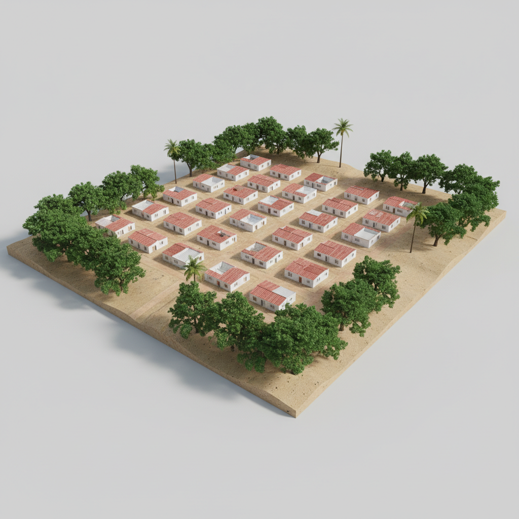 miniature model of a housing community. sharp edges, simple geometry, game-ready, symmetric geometry.