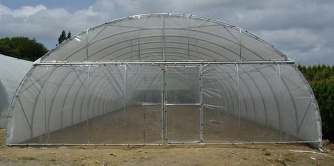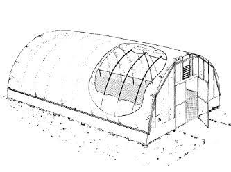 Large greenhouse metal frame structure. simple geometry, sharp edges, symmetric geometry.