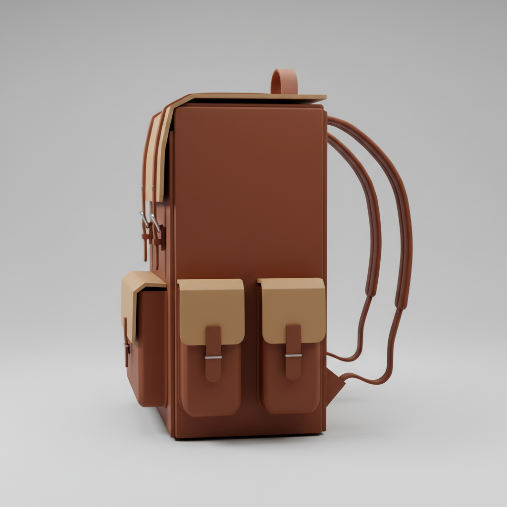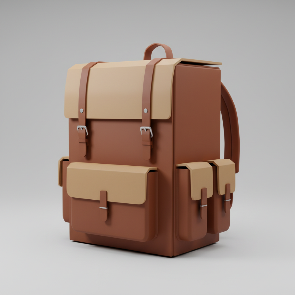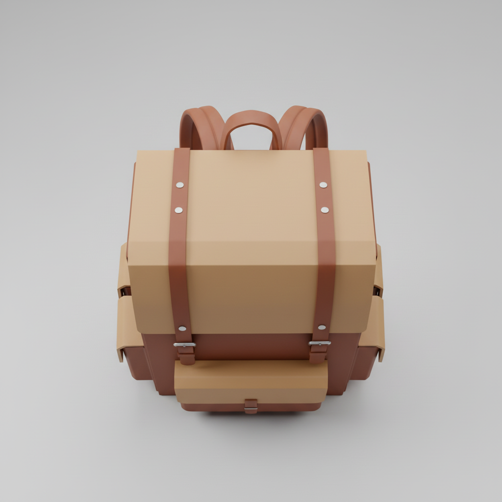 Modern brown and beige backpack. sharp edges, simple geometry, game-ready, symmetric geometry.