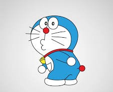 Blue cartoon cat robot holding yellow item. simple geometry, game-ready, character.