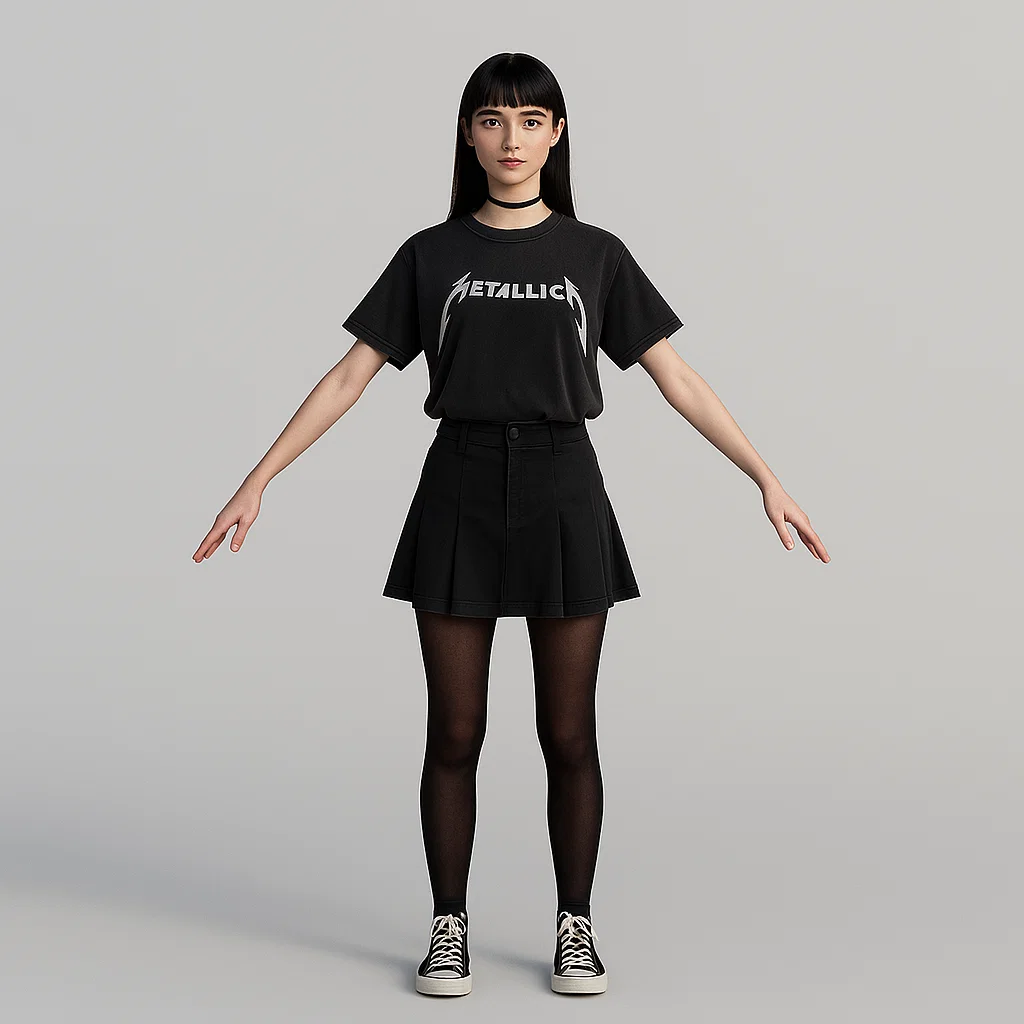 Standing woman in casual outfit. smooth edges, complex geometry, character, symmetric geometry.