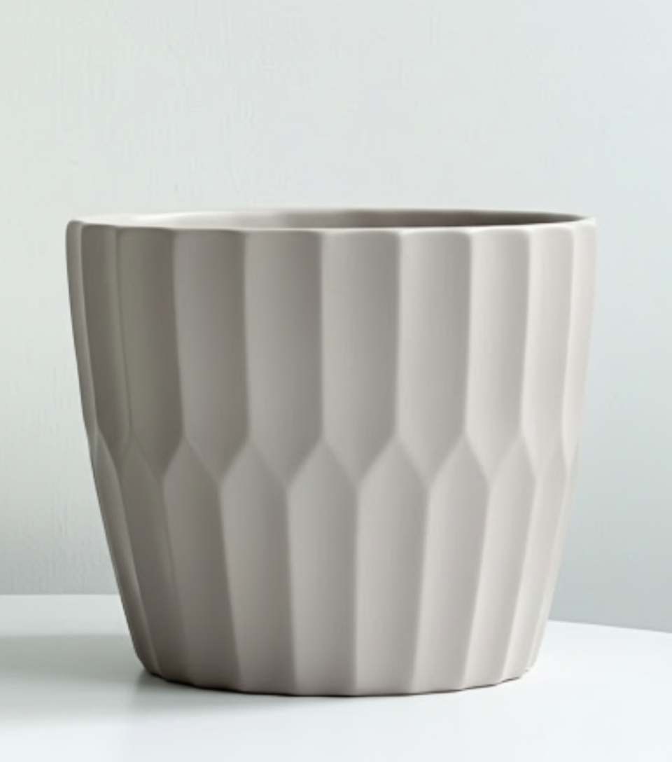 Empty ceramic cup on white table. smooth edges, simple geometry, symmetric geometry.