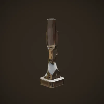 Abstract brass statue of a human figure. sharp edges, complex geometry, character.