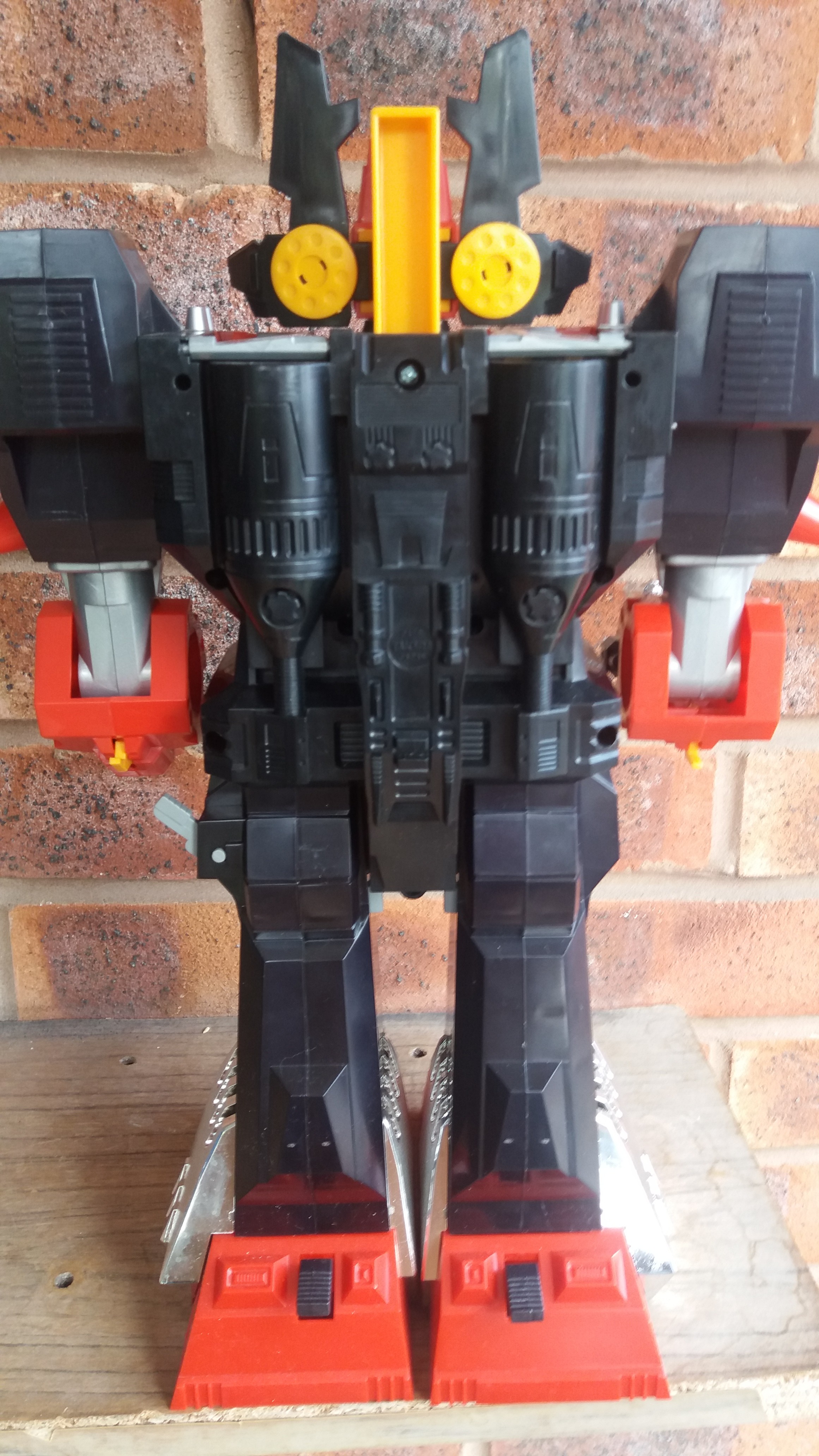 Toy robot standing on wooden surface. sharp edges, complex geometry, game-ready, character, symmetric geometry.