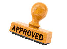 Wooden approved stamp. smooth edges, simple geometry, symmetric geometry.