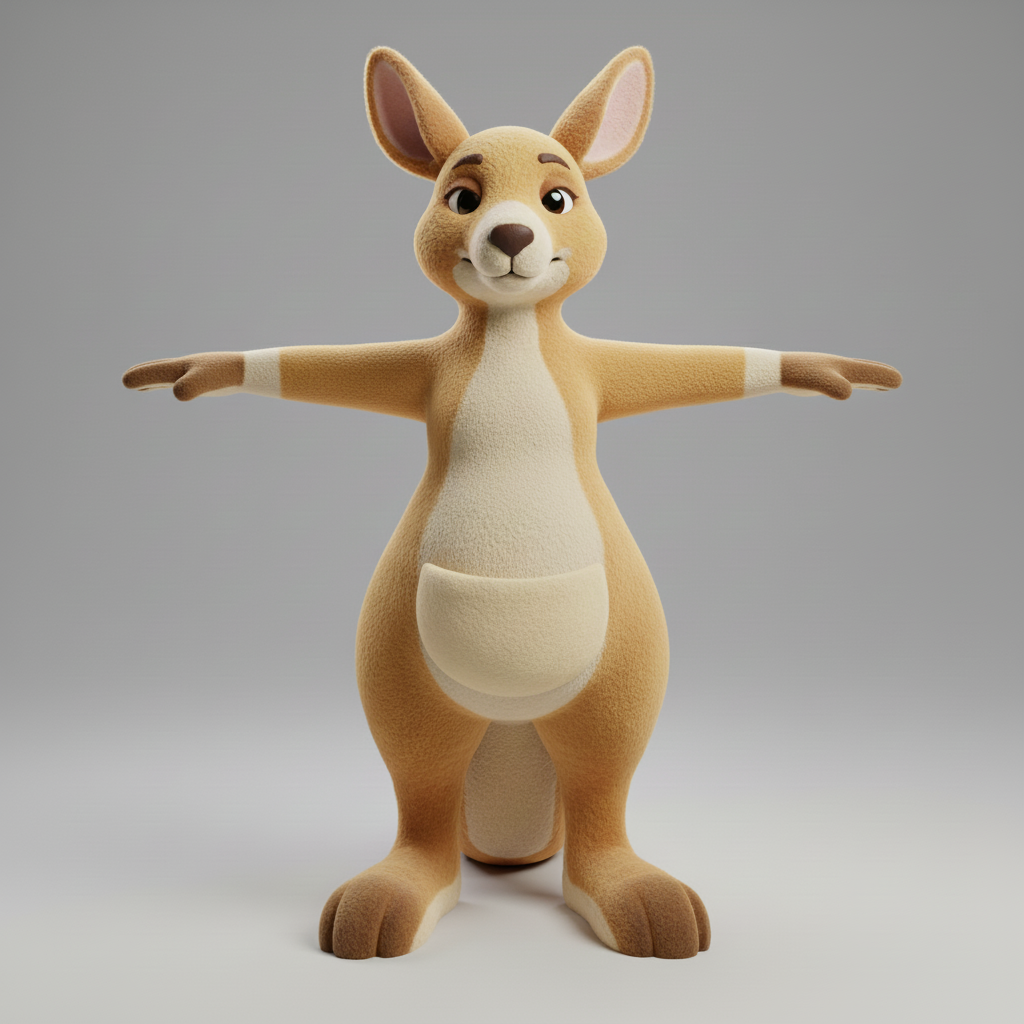 Cartoon kangaroo character in T-pose. simple geometry, game-ready, character, symmetric geometry.