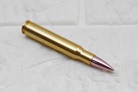 A single rifle bullet cartridge. sharp edges, smooth edges, simple geometry, symmetric geometry.