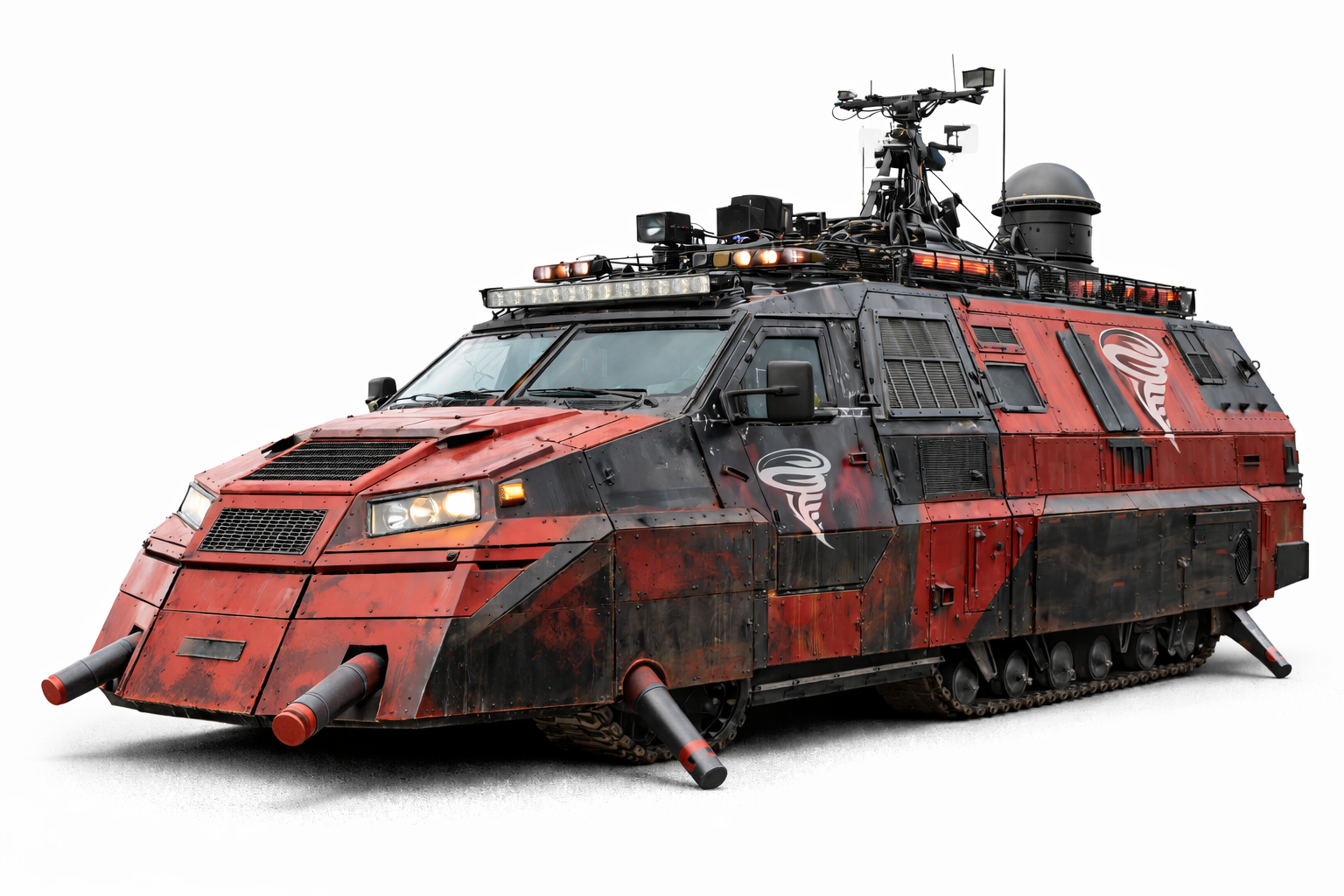 Armored red and black military vehicle. sharp edges, complex geometry, game-ready, symmetric geometry.