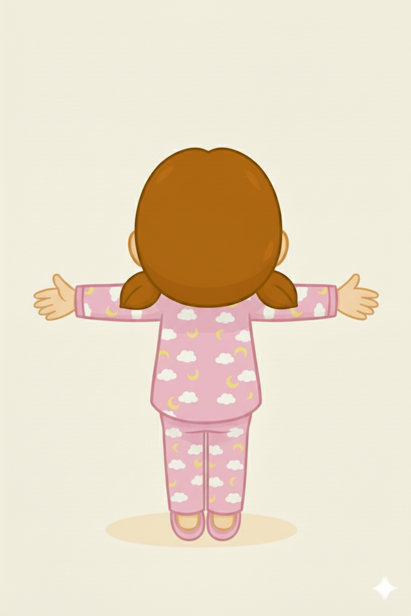 Young girl in pajamas, rear view. smooth edges, simple geometry, character, symmetric geometry.