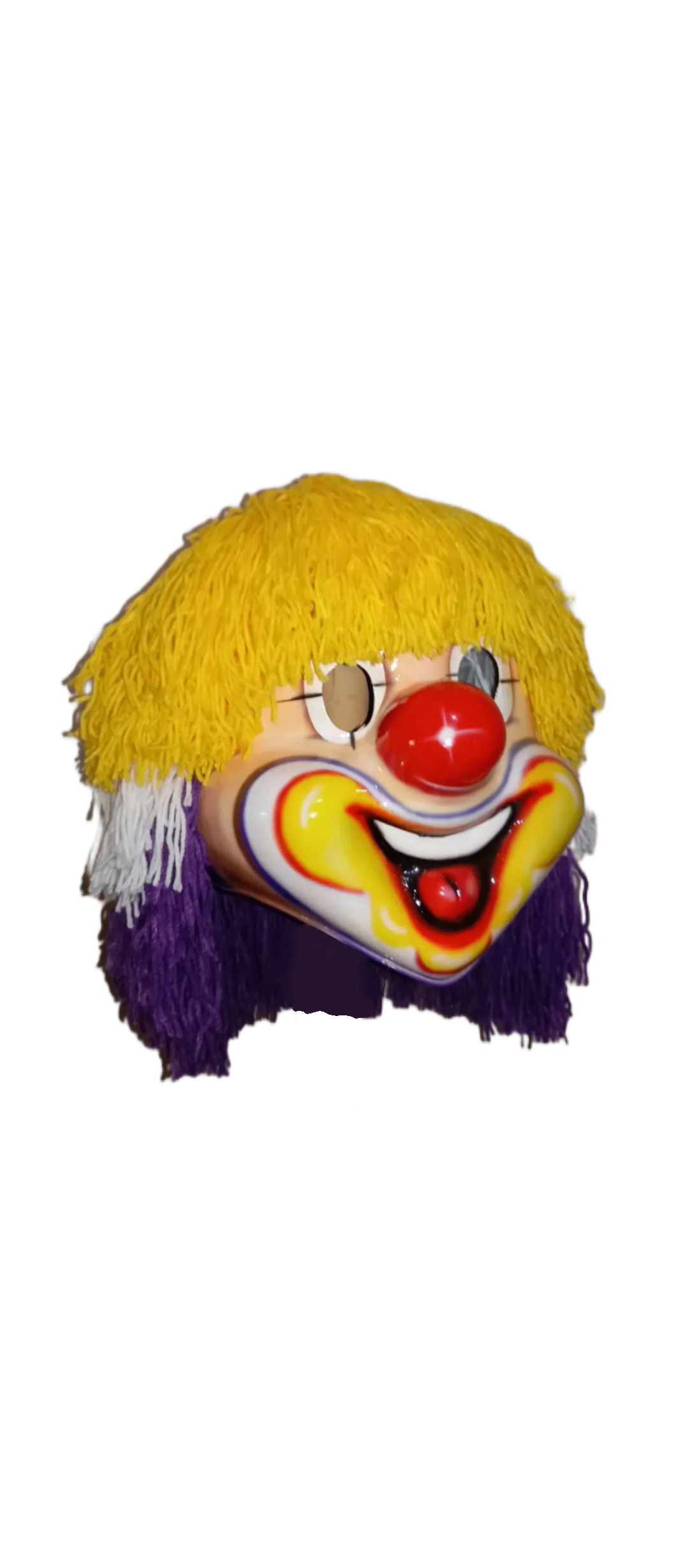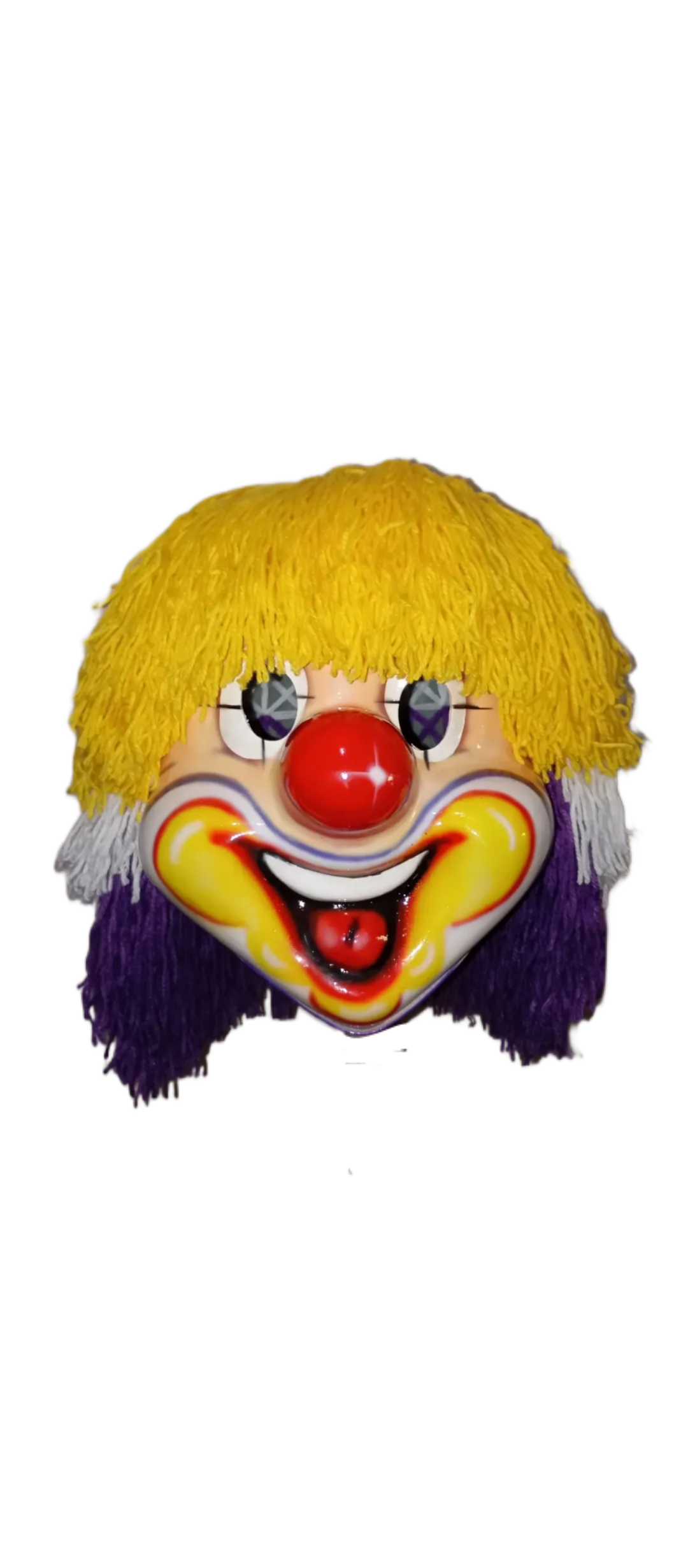 Colorful clown mask with yellow hair. sharp edges, complex geometry, character.