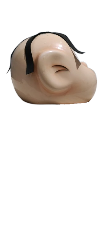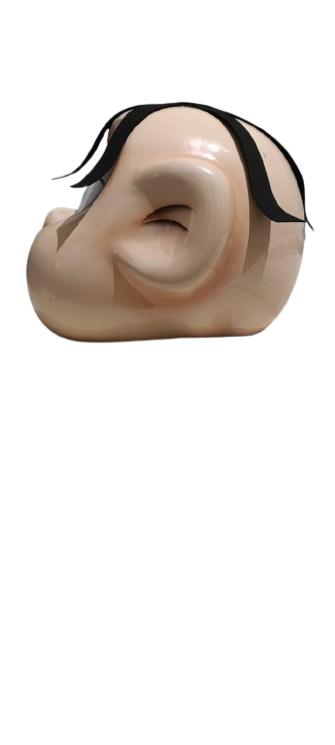 Mask resembling a sleeping human face. smooth edges, simple geometry, character, symmetric geometry.